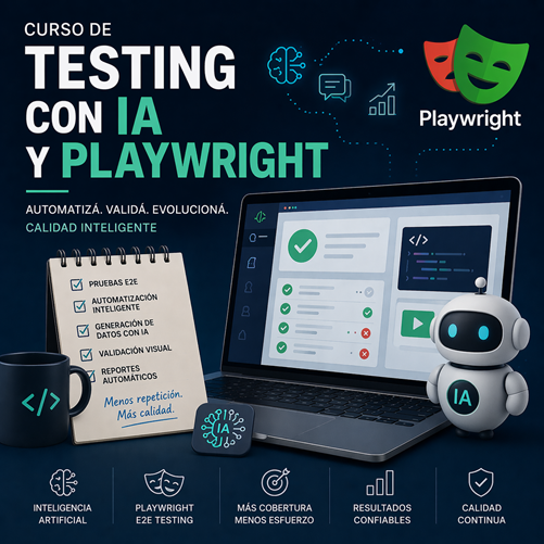 🤖 En este curso descubrirás cómo potenciar el Testing de Software utilizando Inteligencia Artificial junto con automatización moderna basada en Playwright.